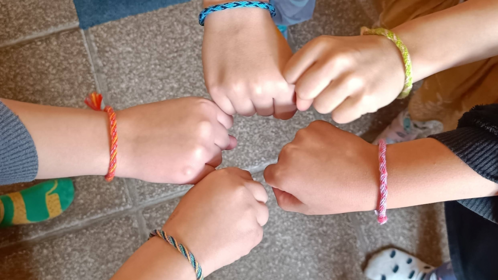 The Oakens have been working very hand creating bracelets to take home. Following a pattern they have created some really intricate designs that they are very proud to wear.